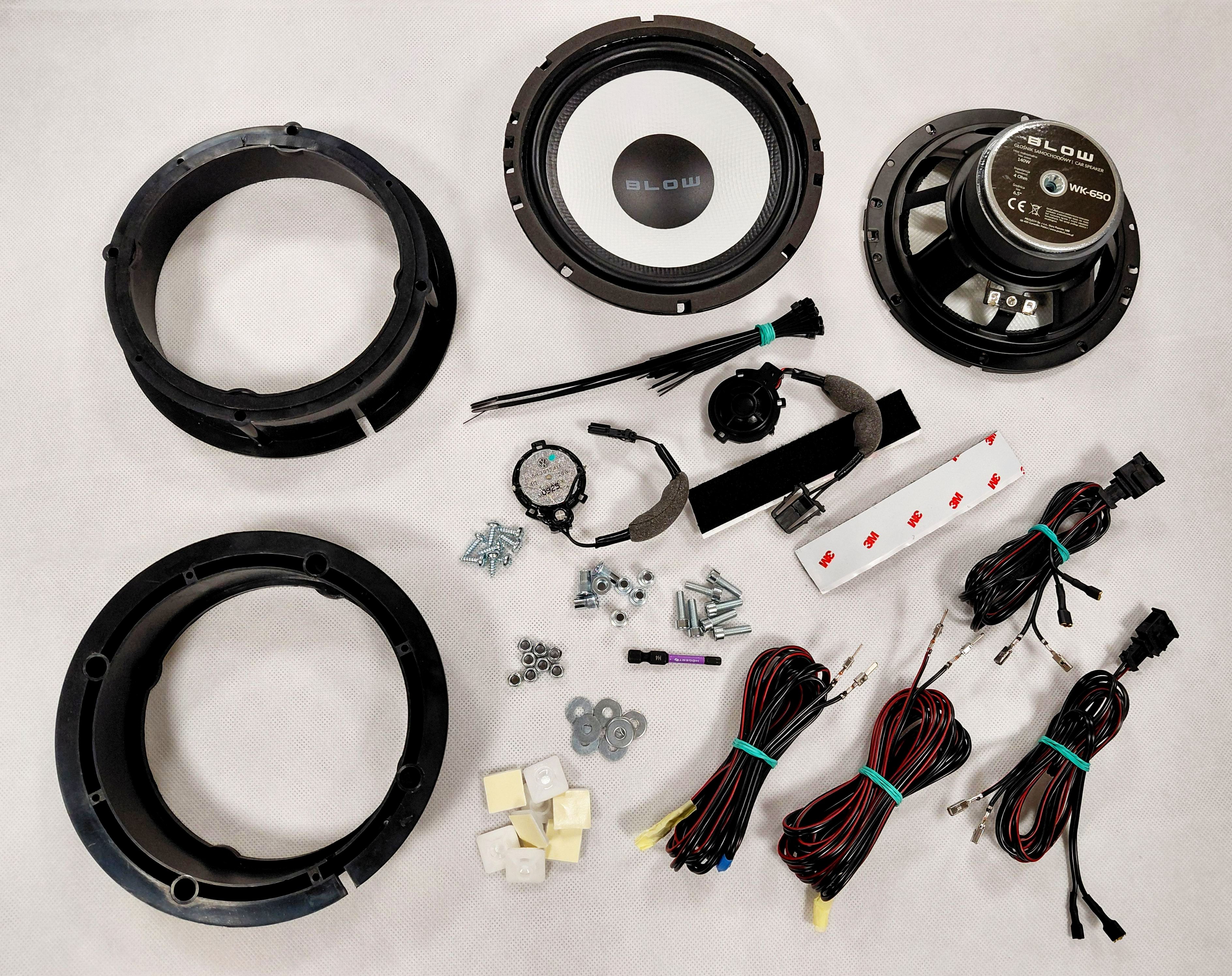 Sada širokopásmových a výškových reproduktorů do zadních dveří pro Škodu Octavii IIIs dělenou kabeláží v zadním sloupku. Sada je určená pro Octavii III, obsahuje výškové reproduktory používané v prvovýrobě, středobasové jsou univerzální + plastové redukce na míru.
